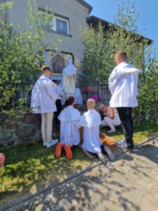 Uroczystość Najświętszego Ciała i Krwi Chrystusa, w tradycji ludowej nazywana Bożym Ciałem to święto ku czci Najświętszego Sakramentu. Po mszy świętej wyszliśmy z Panem Jezusem na ulice naszej parafii. Wszystkim,którzy aktywnie włączyli się w przygotowanie i sprawny przebieg Uroczystości Bożego Ciała, Ks.Proboszcz składa serdeczne podziękowania. Oto relacja z tego pięknego dnia: